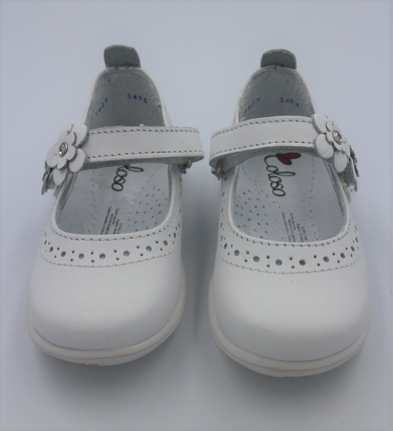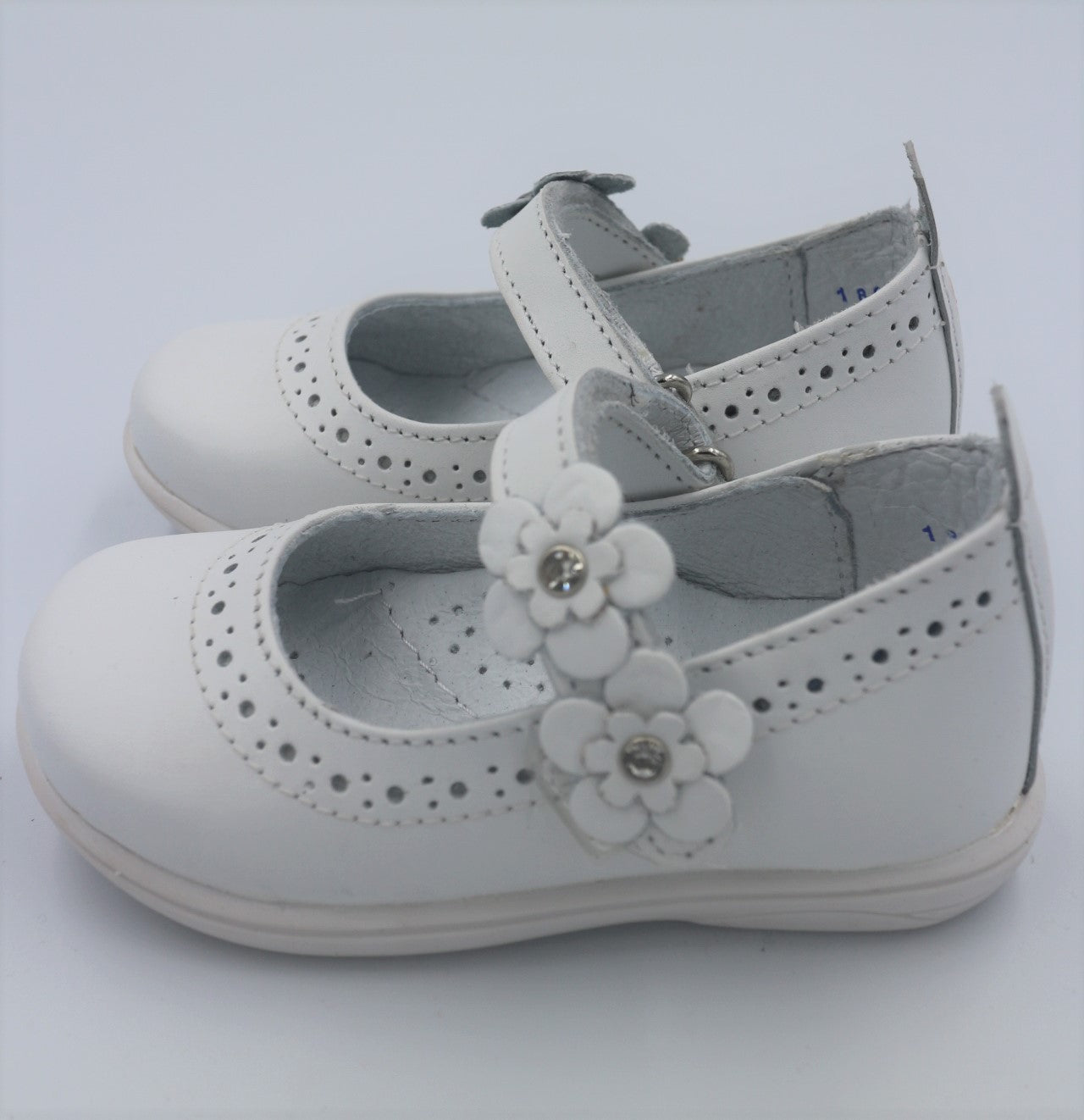 Zapato color blanco ajuste con velcro con lindos detalles de flores por un costado lo más lindos para tu pequeña.