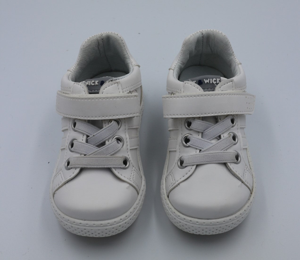 Tenis unisex escolar blanco con elástico y velcro ideal para las actividades escolares.